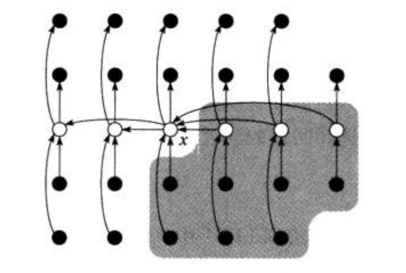 前提是假设所有元素互异,那么x x x 一定小于同一行右侧的白圈,因此阴影部分一定大于x x x